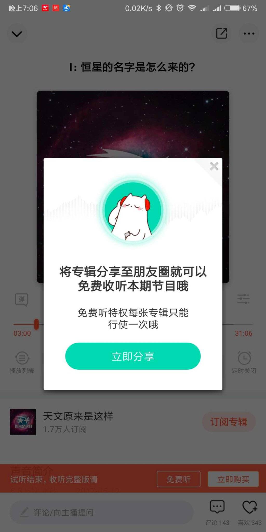 这个分享增加试听的动作对于知识付费类的产品比较贴切,利用用户对付费内容的直接需求创造分享场景,同时可以通过试听增加用户对内容的理解增加购买的转化。