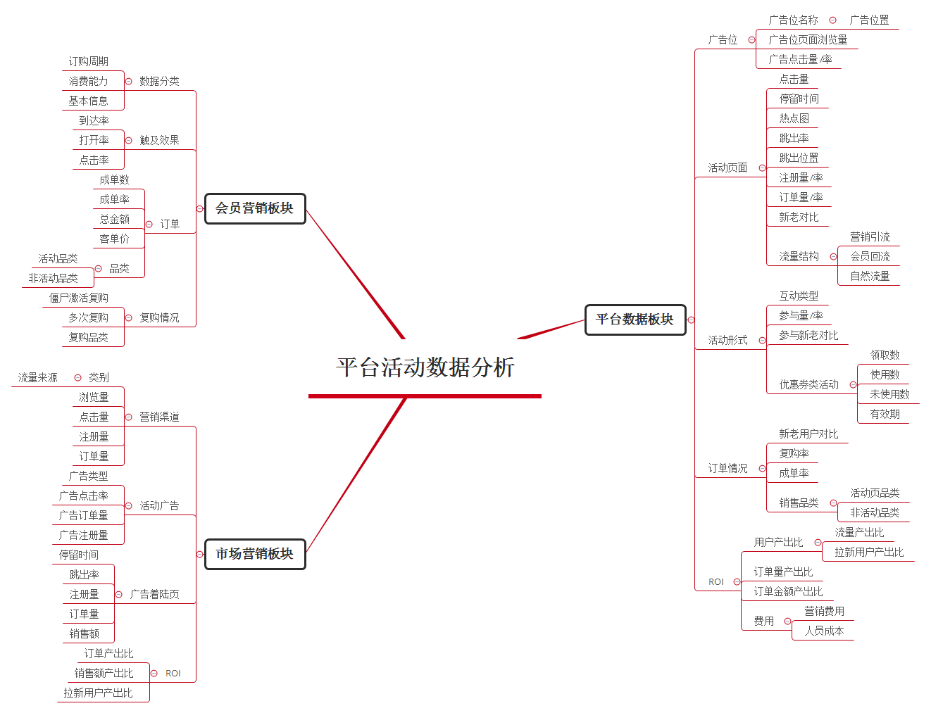 - 相关性推荐是否成功,即在筛选会员数据的时候是同品类活动促进会员行动还是相关类促进会员行动。用以分析会员行为形成更精准的用户画像。