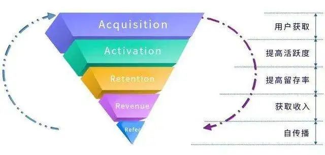 漏斗模型是在用户运营中常用的一套模型,用户从最终的拉新,到最后的自传播都经历了一系列的数据缩减和消退模式。