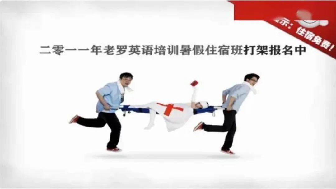 比如咱们现在看到的“1280元的暑假住宿班空前火热,打架报名中”,一个形象的海报,制造了强烈的冲突,这是10年前的海报了,罗老师就已经真人出境,在现在看来,也不算太差。