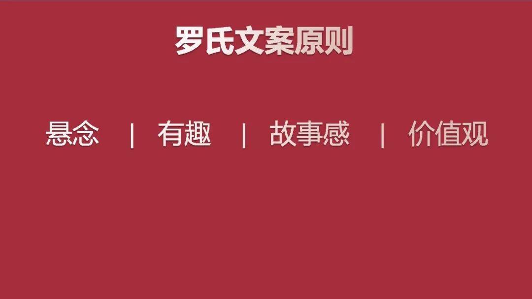 这句话我信了,我们学习罗老师的营销策略,一定逃不过他的文案、他的创意、他的演讲,还有他的情怀。