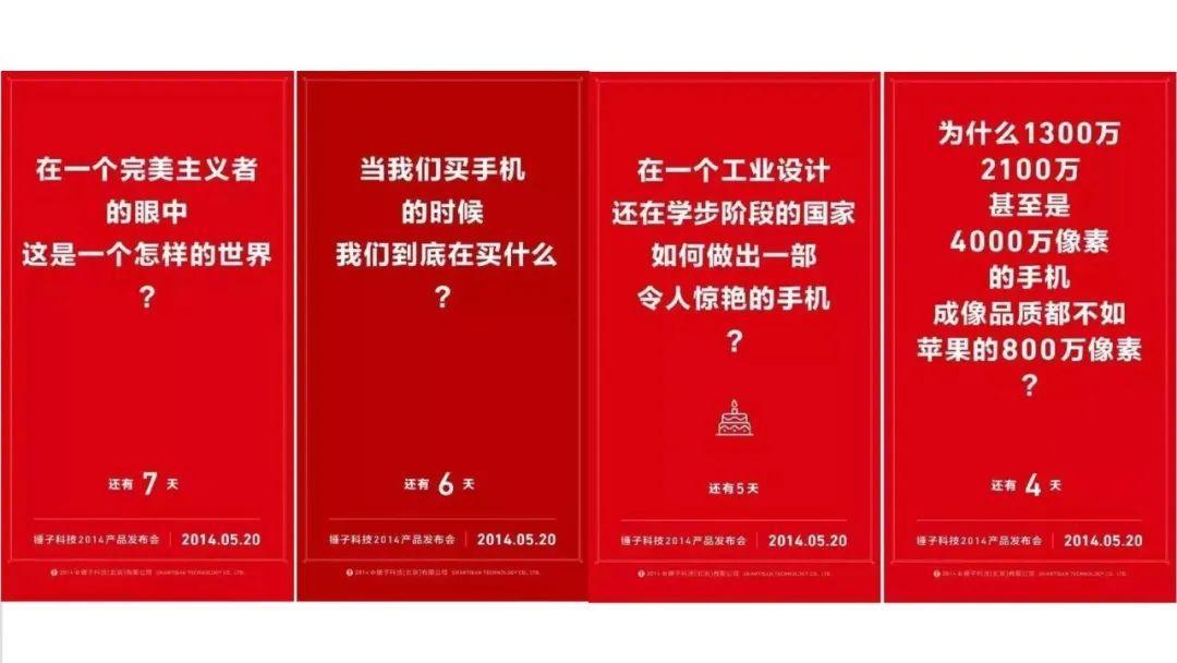 罗老师当然知道自己做手机的不足,为了在众多的手机当中让潜在用户留下一个印象,他就着重在定位和品牌形象去发力。