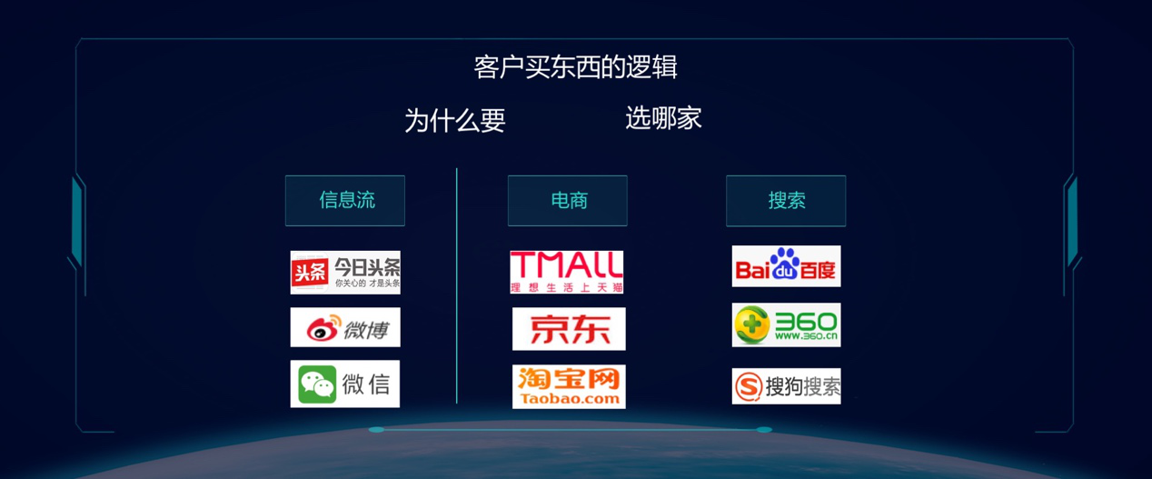 这个买东西的逻辑刚好对应中国几大流量体,什么是流量体?流量源源不绝,至少以亿为单位来计算,并且这些流量容易变现。比如今日头条、天猫、百度。