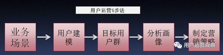 实际这个场景的案例给大家提供了一种用户运营思路,我讲过一个用户运营5步法: