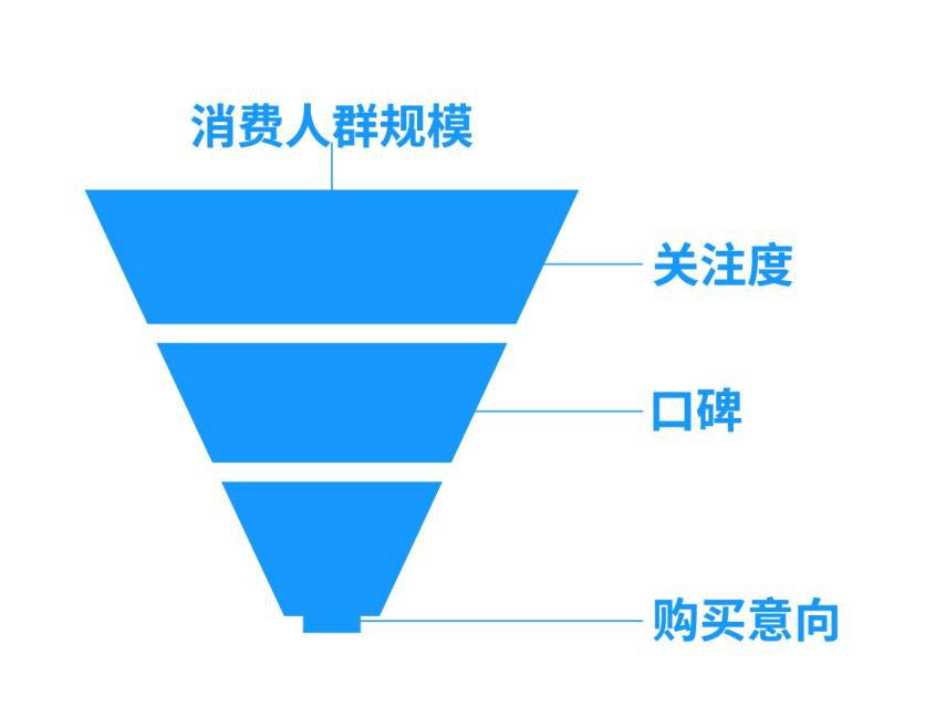 流程思维模型应该有重要节点和任务关键点,关键点越多越明确,对任务的完成度、任务效果的把控力度也就越有效果。最典型的应用场景其实就是漏斗模型。漏斗模型是营销中最常使用到的一个模型,它背后隐含的逻辑其实就是潜在用户在你的营销活动中的行为路径,包括关注→口碑→购买。