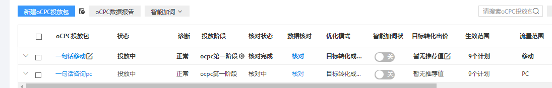 4)一直进不了二阶,可以选择ecpc或者ocpc的低门槛。进入不了二阶的因素很多,出价、绑定范围、投放包个数等等都有影响。