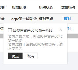 3)在投放的一阶过程中,数据在核对中或者数据核对完成,未进入二阶的情况下都可以选择停留在一阶,选择后亦可更改,进入二阶后就不可能再停留到一阶。要加速进入二阶,需要及时核对数据;