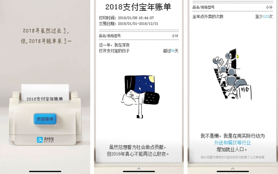 这里以《2018 支付宝年账单》和网易云音乐的《2018 年度听歌报告》为例。