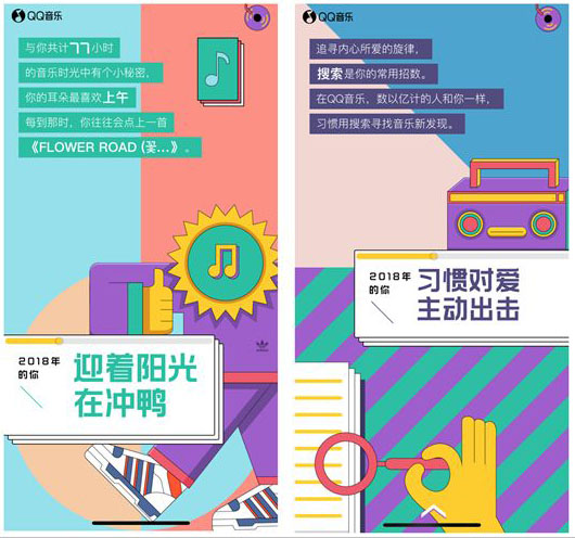 把跟用户(也就是“我”)相关的数据整合并进行展示。比如说,虽然没有刷屏,但是做得也不错的QQ 音乐《你的 2018 音乐记忆》。