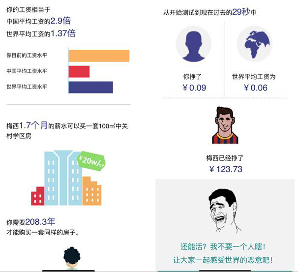 比如说,懂球帝《和顶级球星比工资》,就是一个典型的“不精准”的用户型盘点 H5,输入个人月薪,即可跟球星比买房、买车所花的时间等。