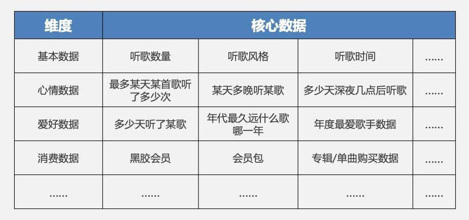 网易云音乐的年度听歌报告维度有基本数据、心情数据、爱好数据、消费数据等,包含以下核心数据: