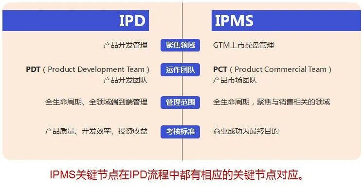 聚焦领域:IPD是一个产品开发管理的流程;而IPMS是一个GTM上市操盘管理的流程。