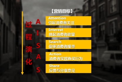 总结来说就是获客到转化的过程,可以遵循AISAS法则,先从吸引到最后的购买并分享这样的的一个过程。