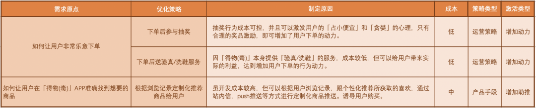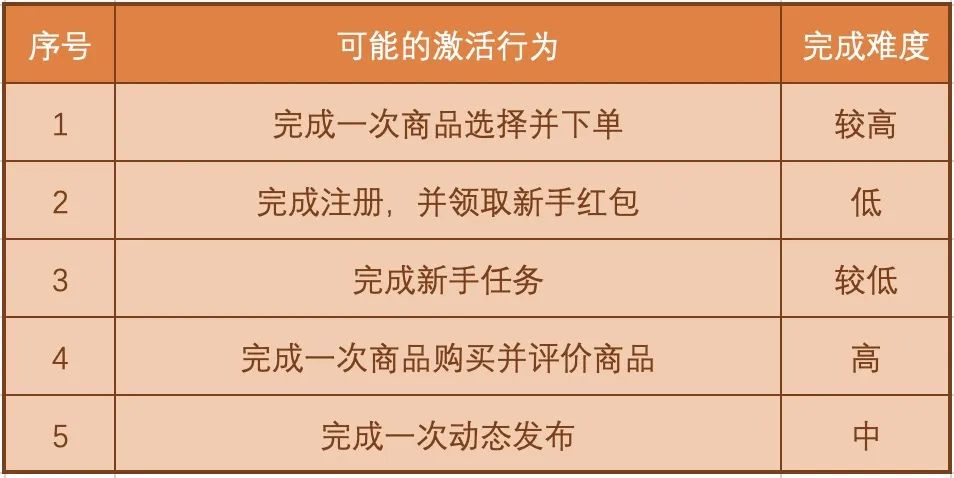 通过上表的分析并结合「得物(毒)」的产品功能(电商+社区),推测可能的激活行为: