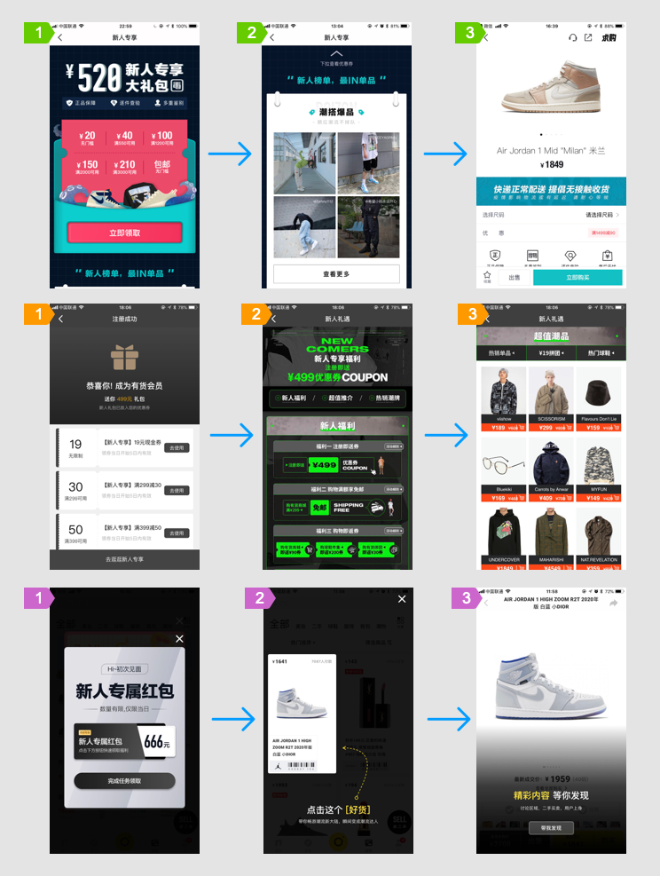 从3.1.可发现,「得物(毒)」的新用户激活(从渠道获取产品到用户下单)的流程中包含了多个支持激活的行为和策略。下面就着重讨论一下这些支持行为和策略。