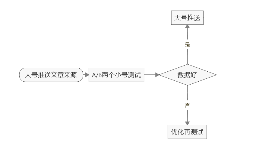 假设这个进入第三阶段的订阅号是A,那么开头也说了,我们还有一个订阅号B,此时A的所有头条文章,不管是转载的还是原创的 ,我们都会先提前1~2天在B进行首推,通过B的数据来分析在A的表现效果如何。