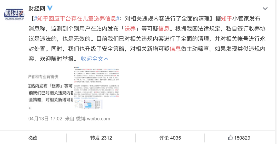 “儿童送养”这个话题在大多平台都是极为罕见的,但知乎最近就因此爆发了一场危及平台声誉的危机。