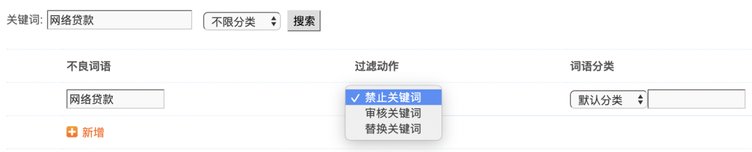 当然,管理员在添加关键词时,很多时候并不是直接把关键词添加到后台。否则用户用很简单的方式就可以避过关键词过滤,比如在关键词内加一个空格,系统就难以匹配到。