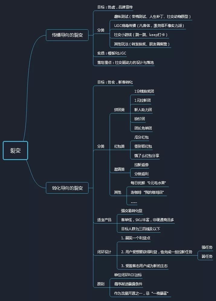 我们搜集了今年接触到的所有转化裂变案例,并做了基本分类如下: