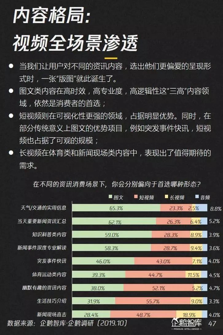 研究发现,用专业知识进行解读的资讯视频占比非常的高:当你看见一个硬新闻之后,你会去看下面的相关解读或背景解析。这就意味着我们的同行、合作方做视频时,我们会在视频后面用人工或机器的方式做一些相关处理。
