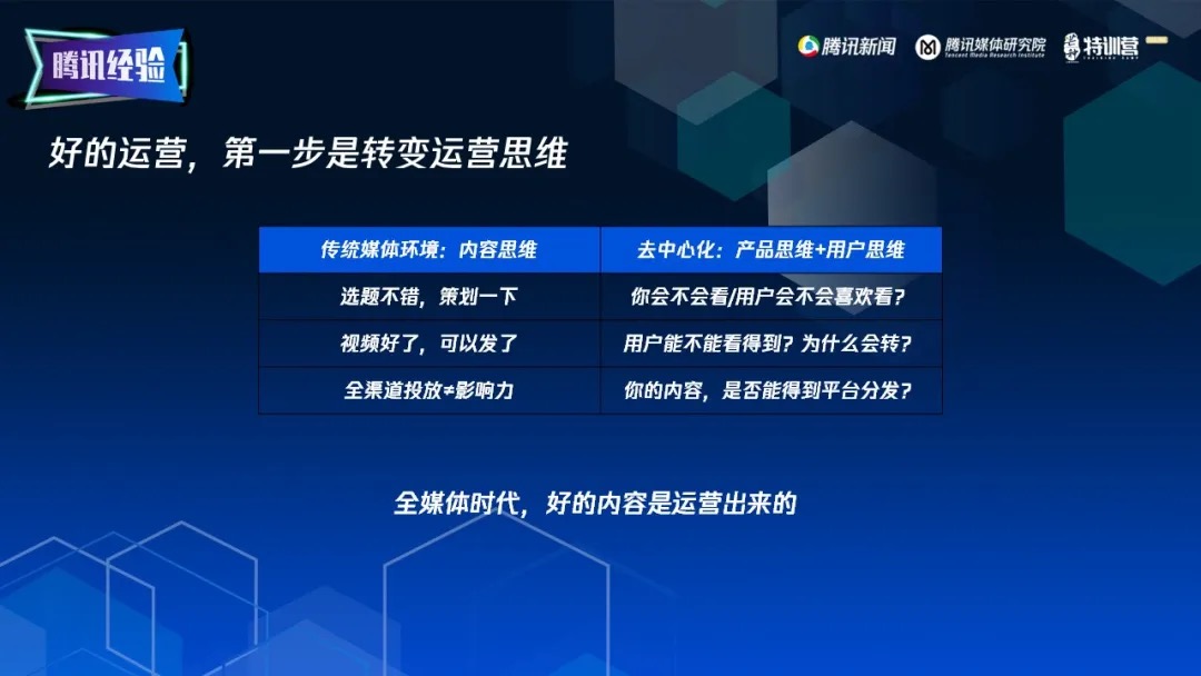 什么是运营?爆款除了需要好内容以外,也需要好的运营,核心是连接用户和产品。腾讯新闻也好,微视也好,腾讯视频也好,把用户和产品连接起来,让你们能尽快在产品上获得信息或愉悦感,就是运营需要做的事情。