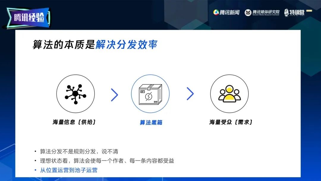 现在,大家听得非常多的是算法的分发。算法的分发不同于人工的编辑,以前多是依靠人工,现在大多依靠算法推荐。算法分发的本质是什么?是为了解决分发的效率。