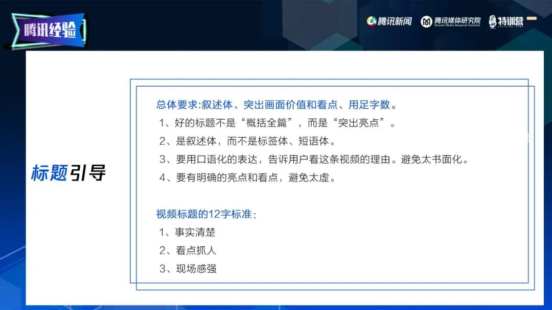 标题引导的总体要求和标准如下图,其中非常核心的一点是:好的标题一定要让人能产生画面感。