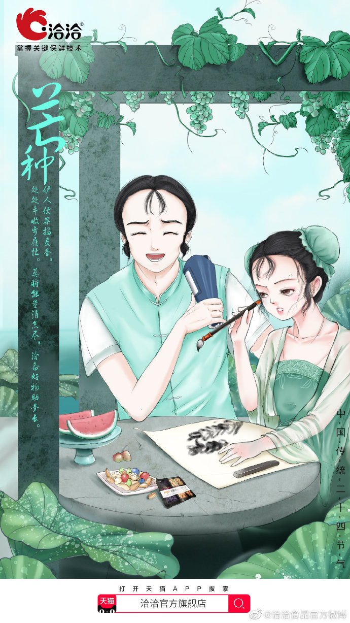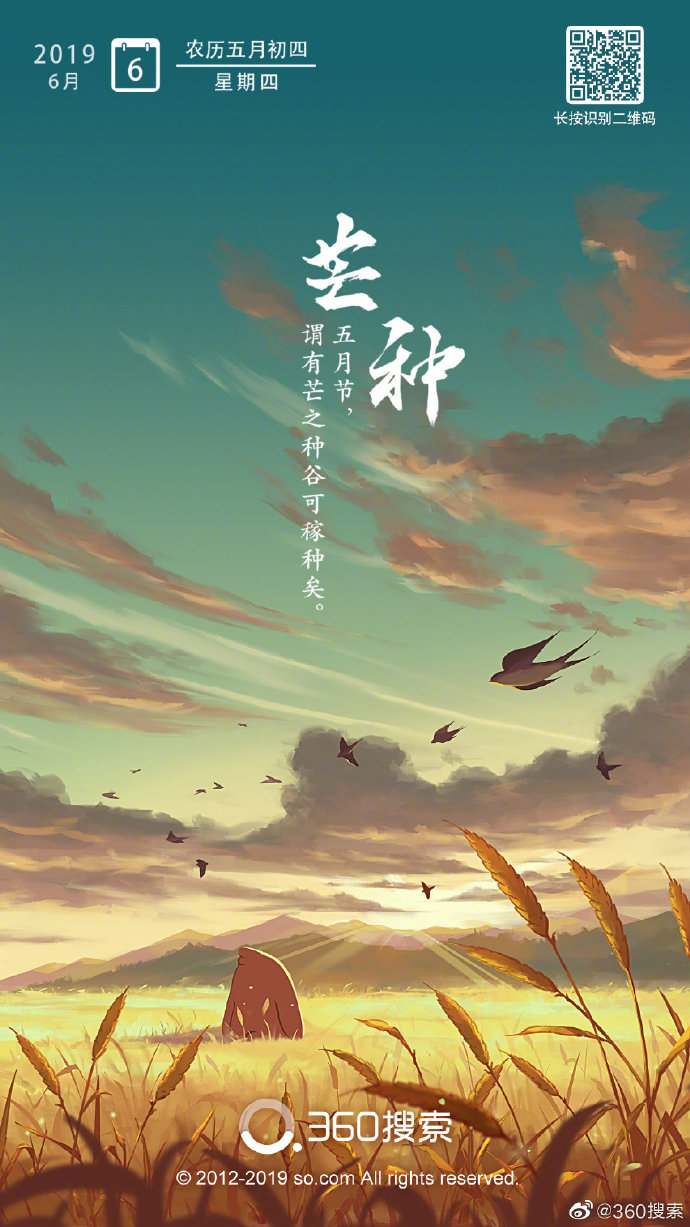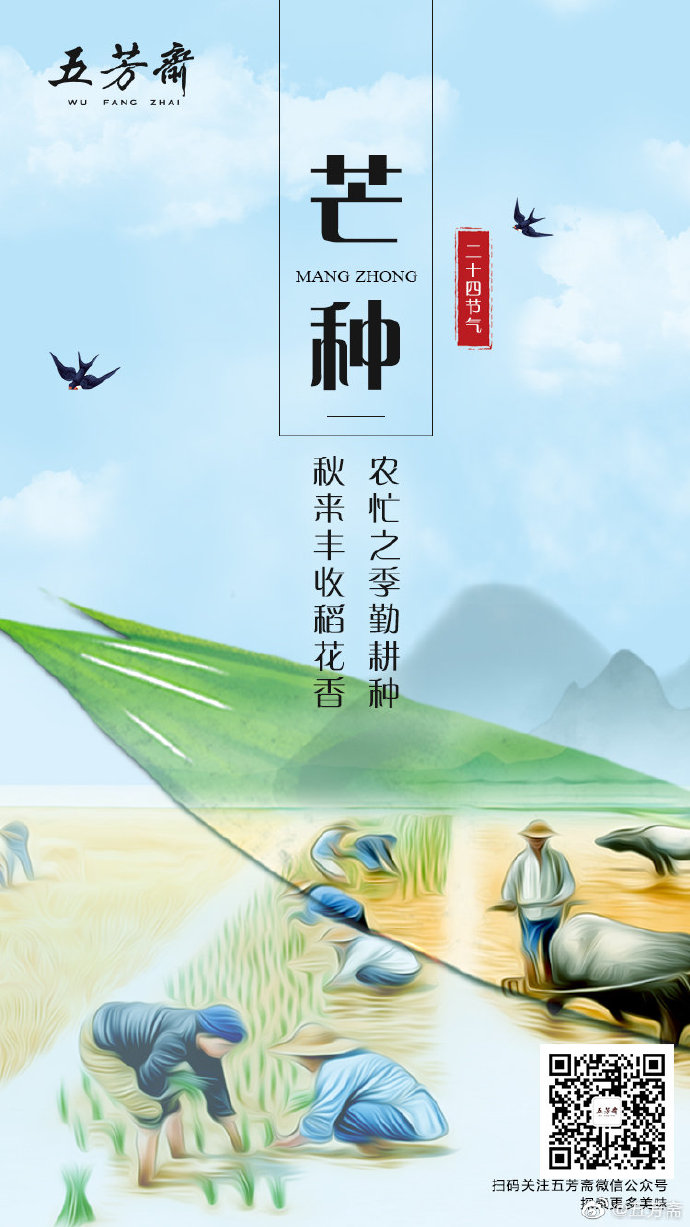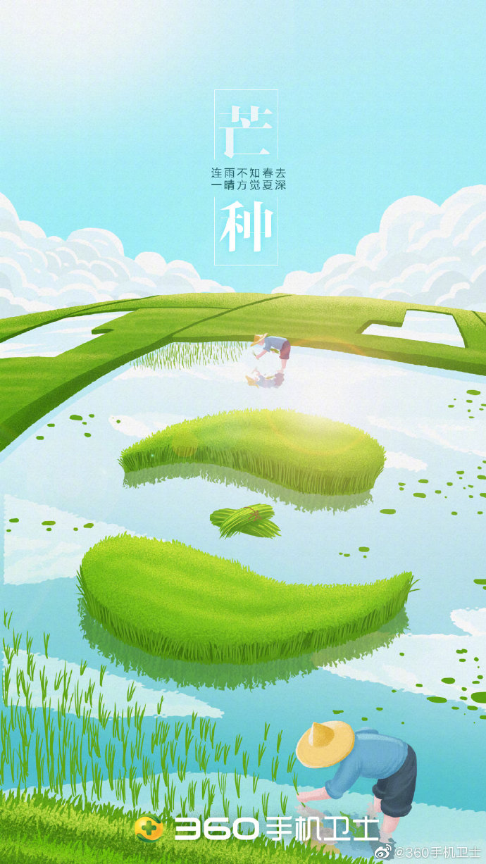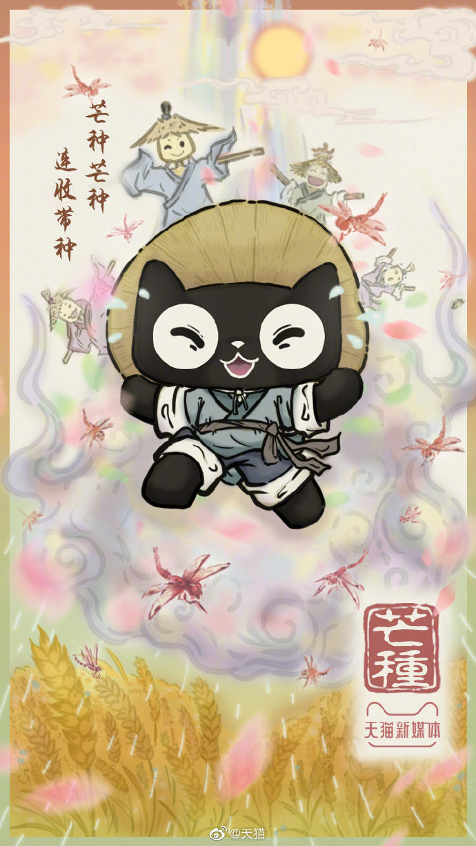 今日#芒种# ,二十四节气中的第9个节气,夏季的第三个节气。“芒种”也称“忙种”,预示着农民开始了忙碌的田间生活,也是仲夏时节的正式开始,防暑防晒都要好好准备起来了。#天猫24节气图#