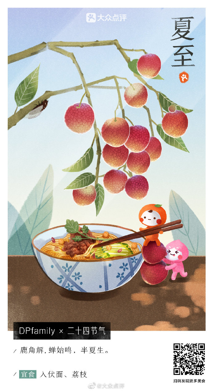 鹿角解,蝉始鸣,半夏生。#夏至#已至,宜食入伏面、荔枝。今天,你吃面了吗?