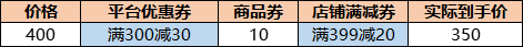 (2)平台活动价只可与店铺券或商品券二者之一叠加,以优惠金额高的为主。