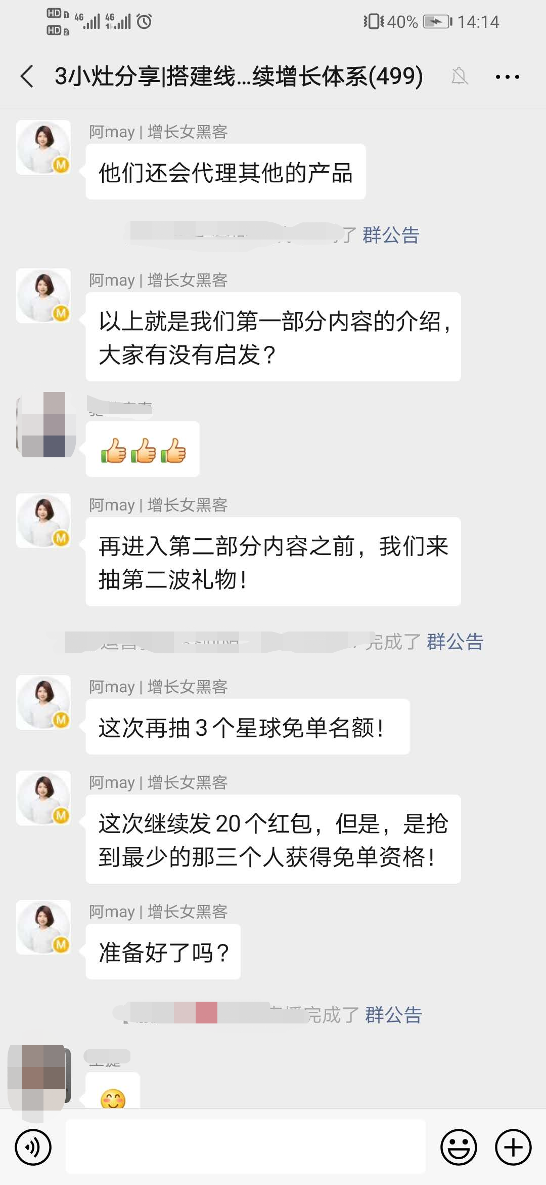 这里切记一点:即使是免费的用户,也要在你问过他们后,他们愿意参加的基础上拉他们进群,如果直接群发的入群链接。这样的群一定没有效果。想象一下你是怎么处理街边发传单的,他们就是怎么处理你发的信息。