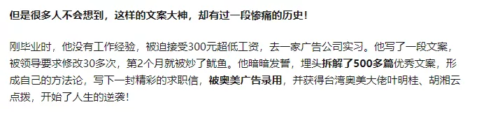 例如:你写过一篇爆文,那你就可以讲一讲自己是怎么在学习和摸索中进步成长的。最终完成了这样的目标。也可以符合从从普通变成功的路径。