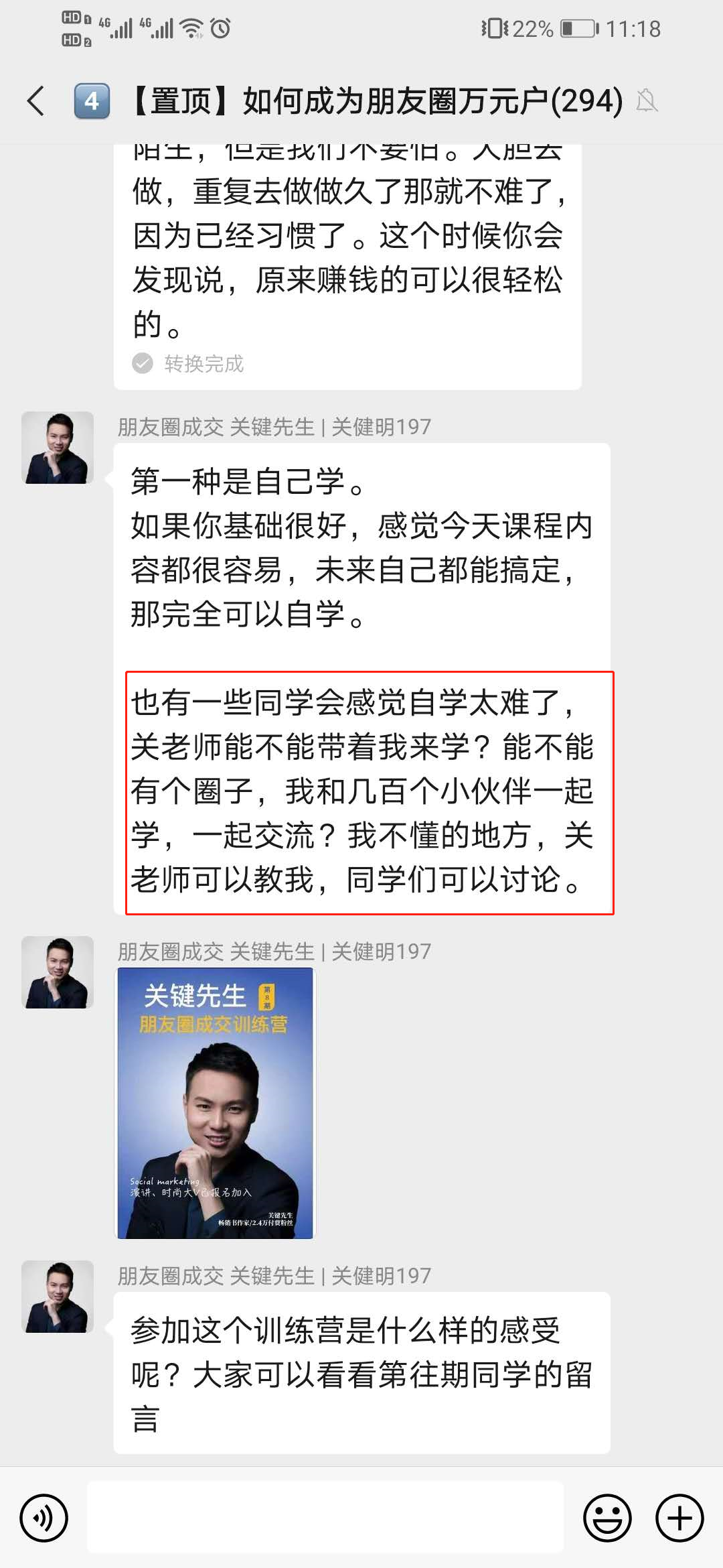 有的群发售用考核的形式来让学员付出一些代价,这样更容易成交。