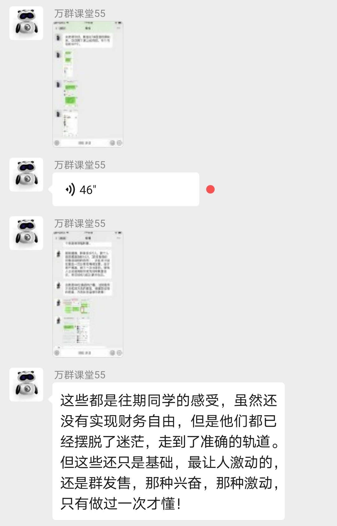 其实即使是很多用户购买也会发现没多长时间买完的学员都已经把截图发出来了。我们为了让群活跃起来,不要让群冷清,同时也是为了进一步促进成交。就要派出我们的水军了。
