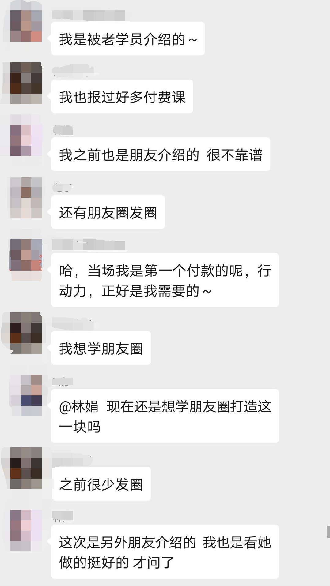 也可以发一些之前学员对你这个课程的一些评价。直接微信截图,越真实越好。