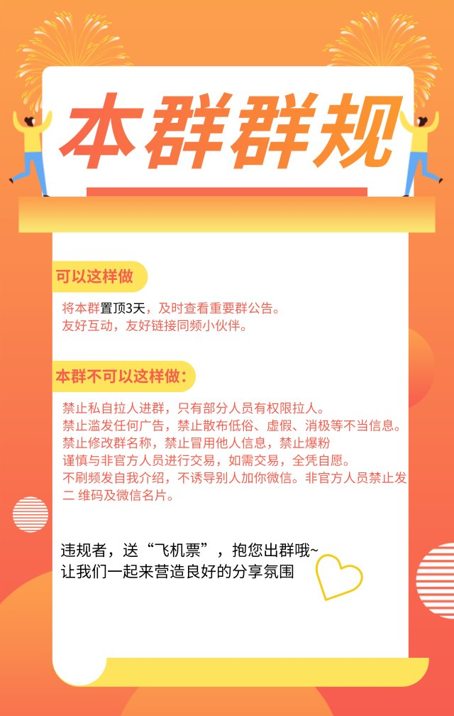 进群后我们要做的事情就是告知学员之后的日常安排和群规。