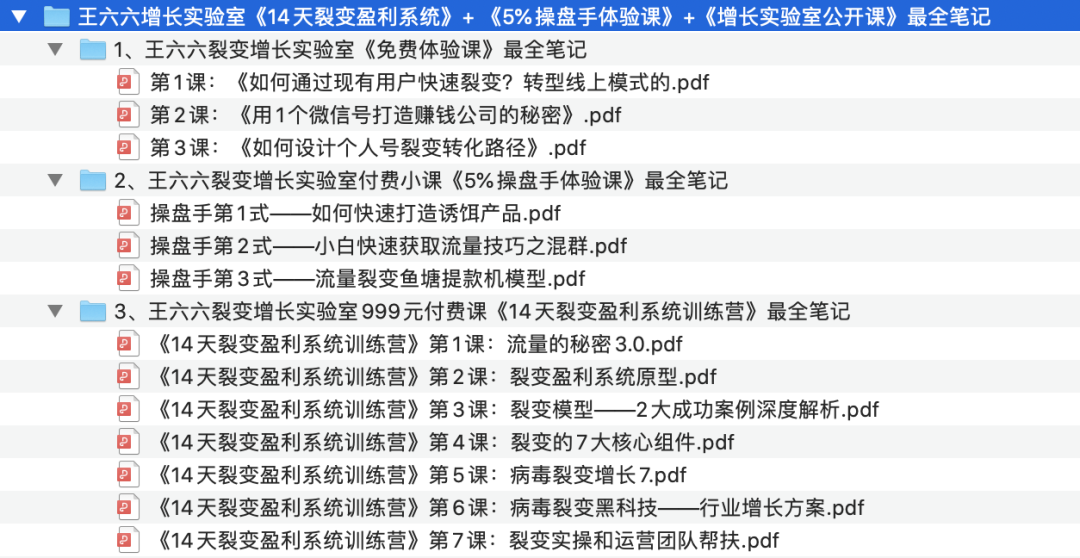 下面我将通过王六六《02期裂变盈利训练营》深度解析,和王六六《裂变增长实验室》系统方法提炼两部分内容,带你搞懂地表最强裂变团队的玩法。再配合我耗时 50 小时精心整理的【裂变训练营精品课全套笔记】,让你可以免费且快速掌握价值 999 元的裂变训练营全部课程。(已从 799 元涨价为 999 元)