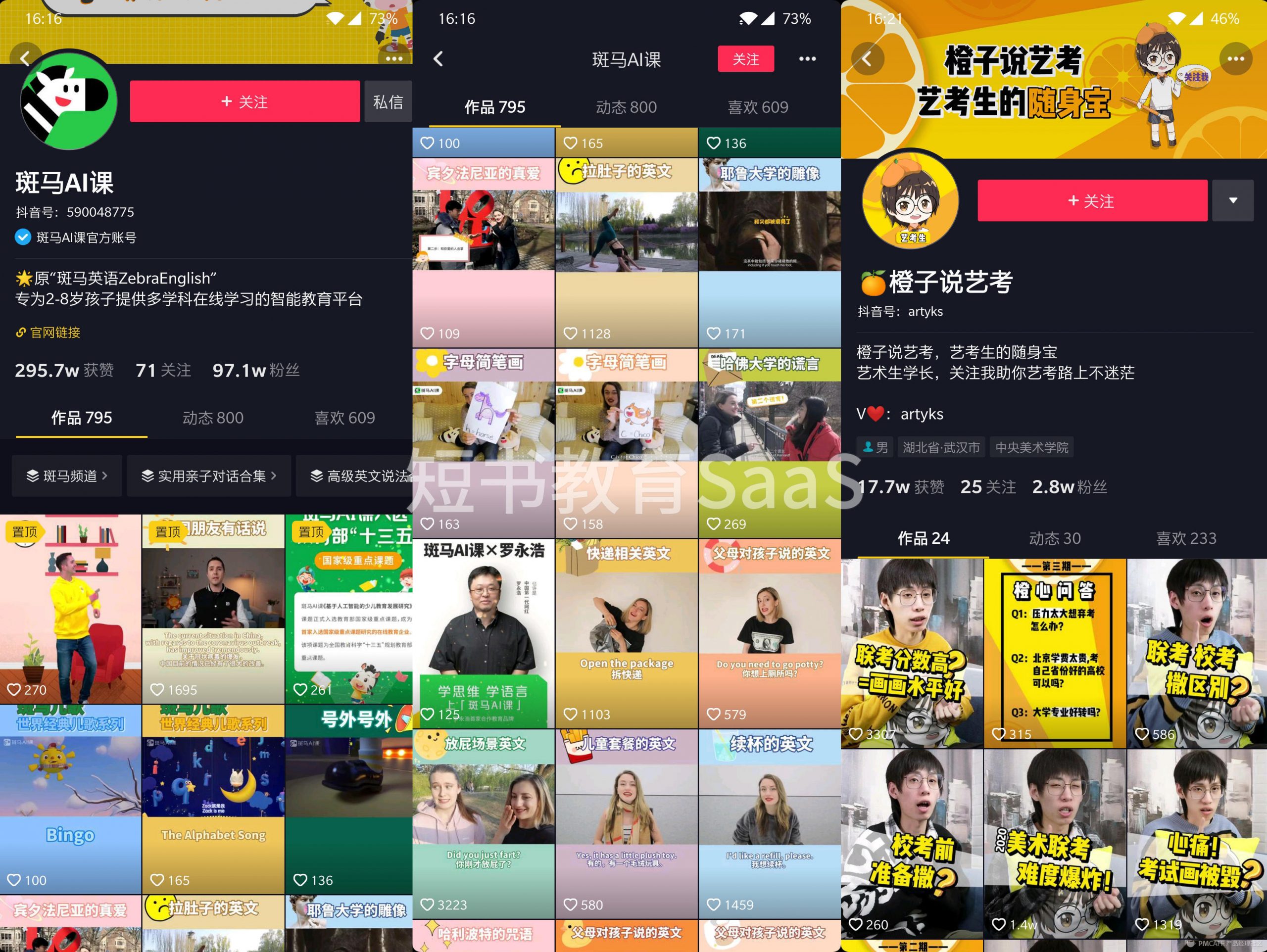 一个教培机构的资质、教学实力,想要通过短视频这样的音像形式展现出来,很难。教学实力的展现和用户体验高度相关,没有和客户有足够的联系情况之下,想通过一条短视频内容就传递出这样的信息价值,这是行不通的。