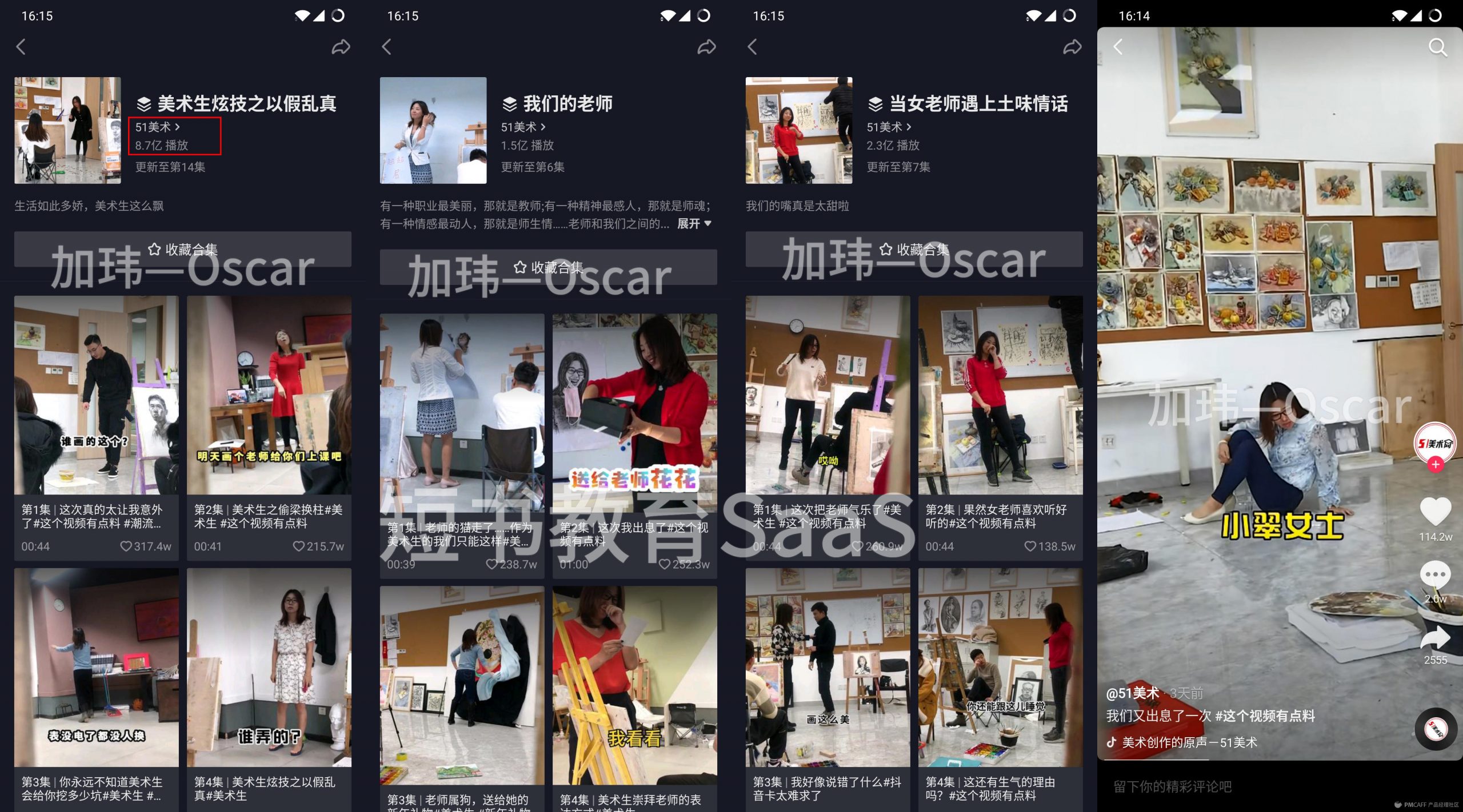 - 抖音ID:51美术,目前抖音粉丝1025W,一家美术艺考教培机构在运营的抖音号。