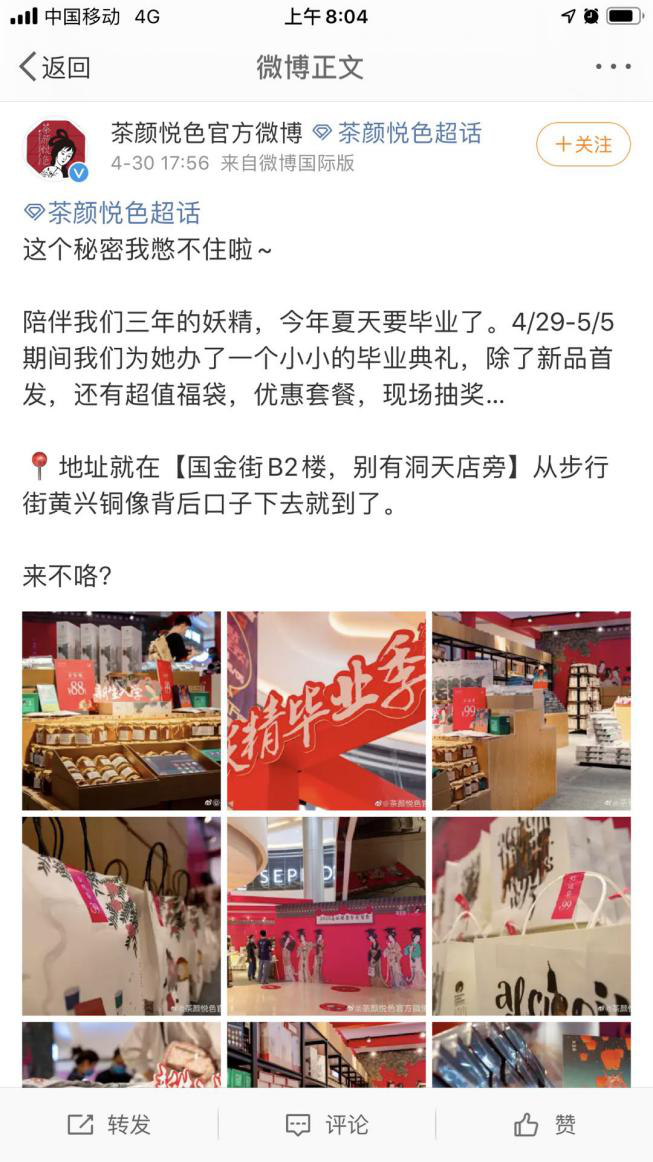 茶颜悦色创办的公众号、微博,不仅仅是单方面的输出内容,而且最重要的是与顾客保持互动,吸取建议,也就是基于顾客需求定位,及时与顾客沟通,再根据顾客的要求不断更新、调整产品与营销方式,保证了品牌的发展活力。