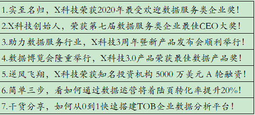 如下图,以X科技公司为例,笔者罗列了七则我们比较常见的To B企业内容宣传文案形态。