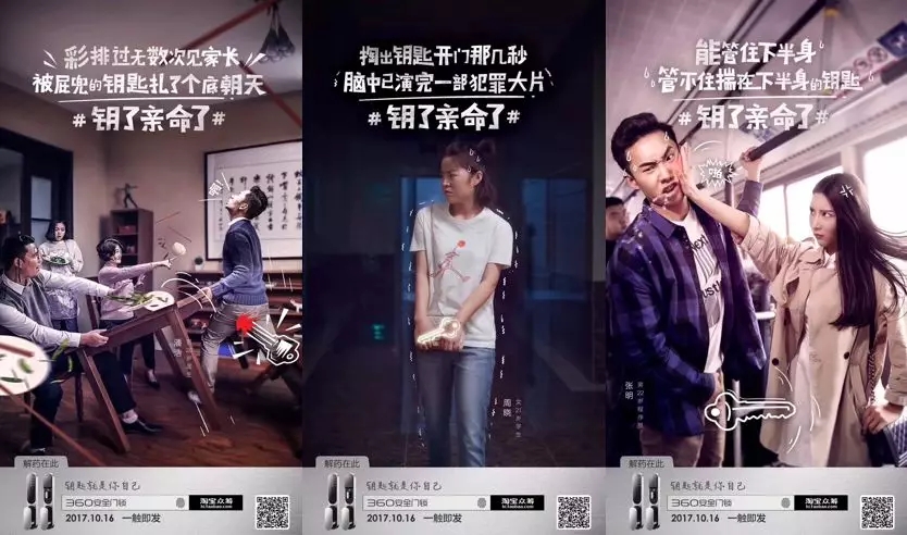 例如,“忘掉钥匙”可以说是几乎每个人都体验过的“小确烦”,360安全门锁在其安全门锁的产品海报中,就通过描绘“忘带钥匙”带来的尴尬场景,让用户产生代入感,意识到能用指纹开门的便利。