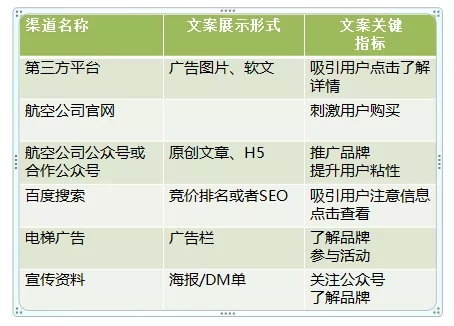 通过对航空公司不同渠道接触点的分析,就可以依据整体营销目标系统设计痛点文案内容,并通过客户接触点上的的流量以及转化创新,不断优化迭代痛点文案体系。