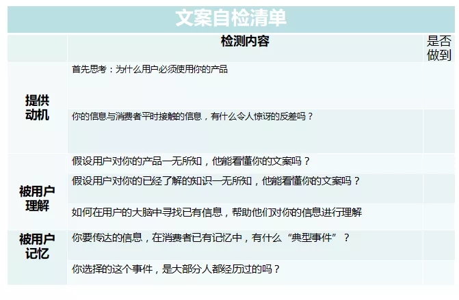 第三步,通过自检清单,对成型的文案进行优化以及梳理