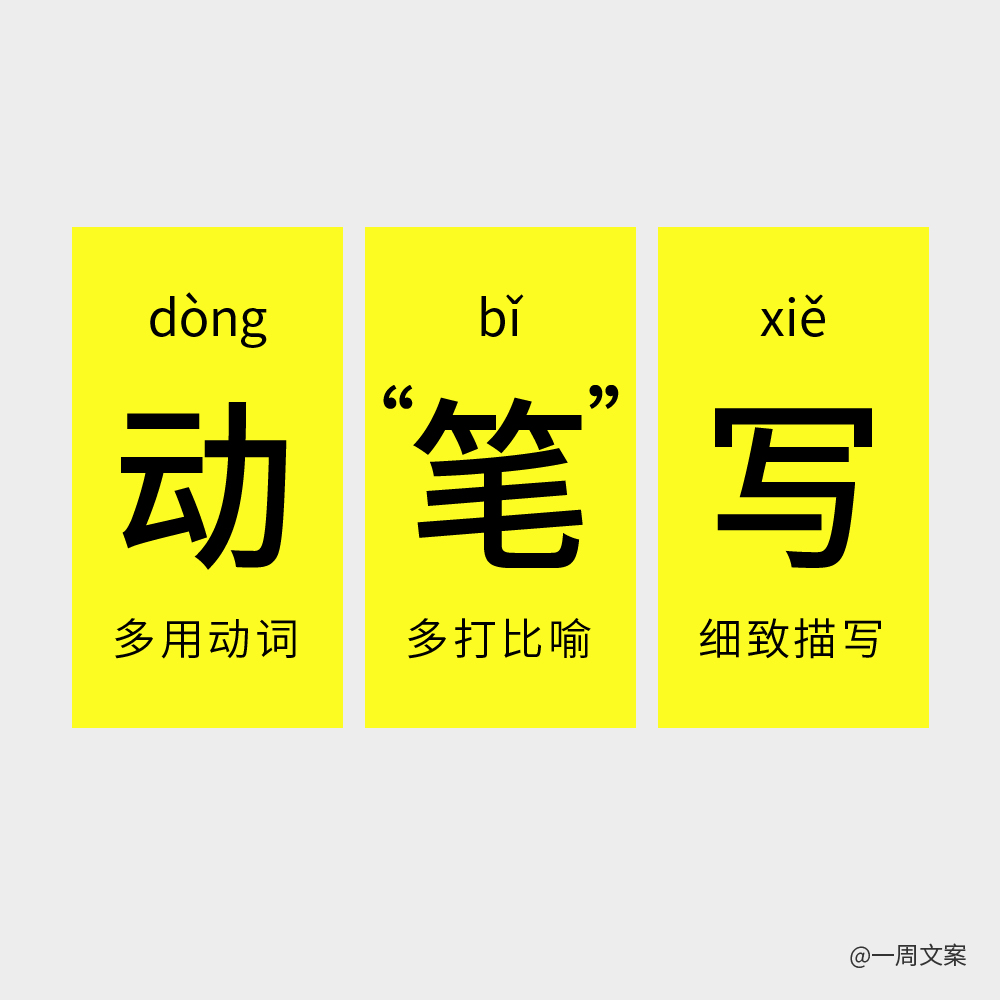 写出有画面感的文字,教程有很多,但要么太学术,要么记不住,所以今天给大家总结一个最简单的方法,就是记住三个字:动、“笔”、写。