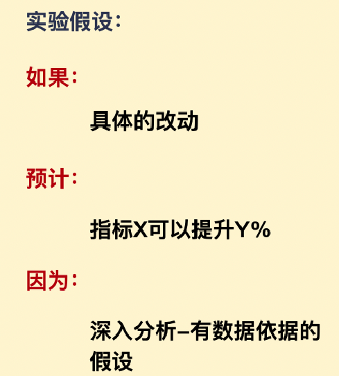从上述假设就可以发现,一个清晰的假设是实验成功的基础前提。