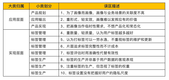 表1:用户画像的10大误区及其分类