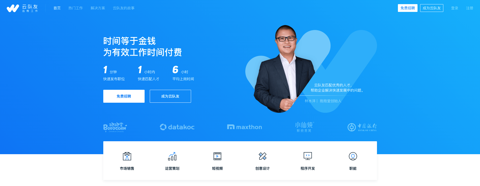 这里给出一个正面的参考对象,同样为服务交易平台的云队友。