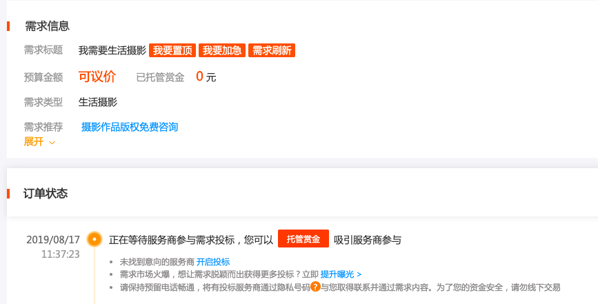 - 服务交易最主要的还是靠服务内容是否足够吸引用户下单,提高服务水平营造良好的口碑获取信任才是基础;