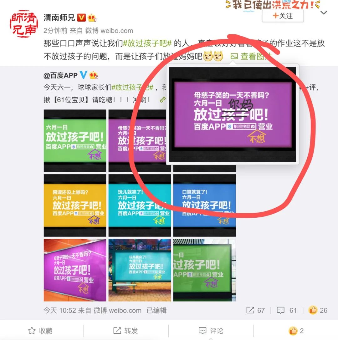 六一儿童节,无意间看到了百度APP的一组儿童节广告,由此联想到了近几年的一些其他案例,也由此引发了对于「欲擒故纵」式营销的思考,当然,这个名字也可以换成「反套路」式营销,「以退为进」式营销,「此地无银三百两」式,「自杀」式营销什么的,总之,翻译成人话就是“反着来”的营销。